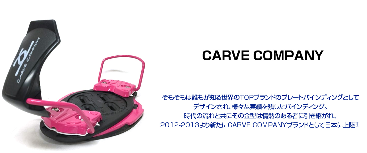 そもそもは誰もが知る世界のTOPブランドのプレートバインディングとしてデザインされ、様々な実績を残したバインディング。時代の流れと共にその金型は情熱のある者に引き継がれ、2012-2013より新たにCARVE COMPANYブランドとして日本に上陸!!